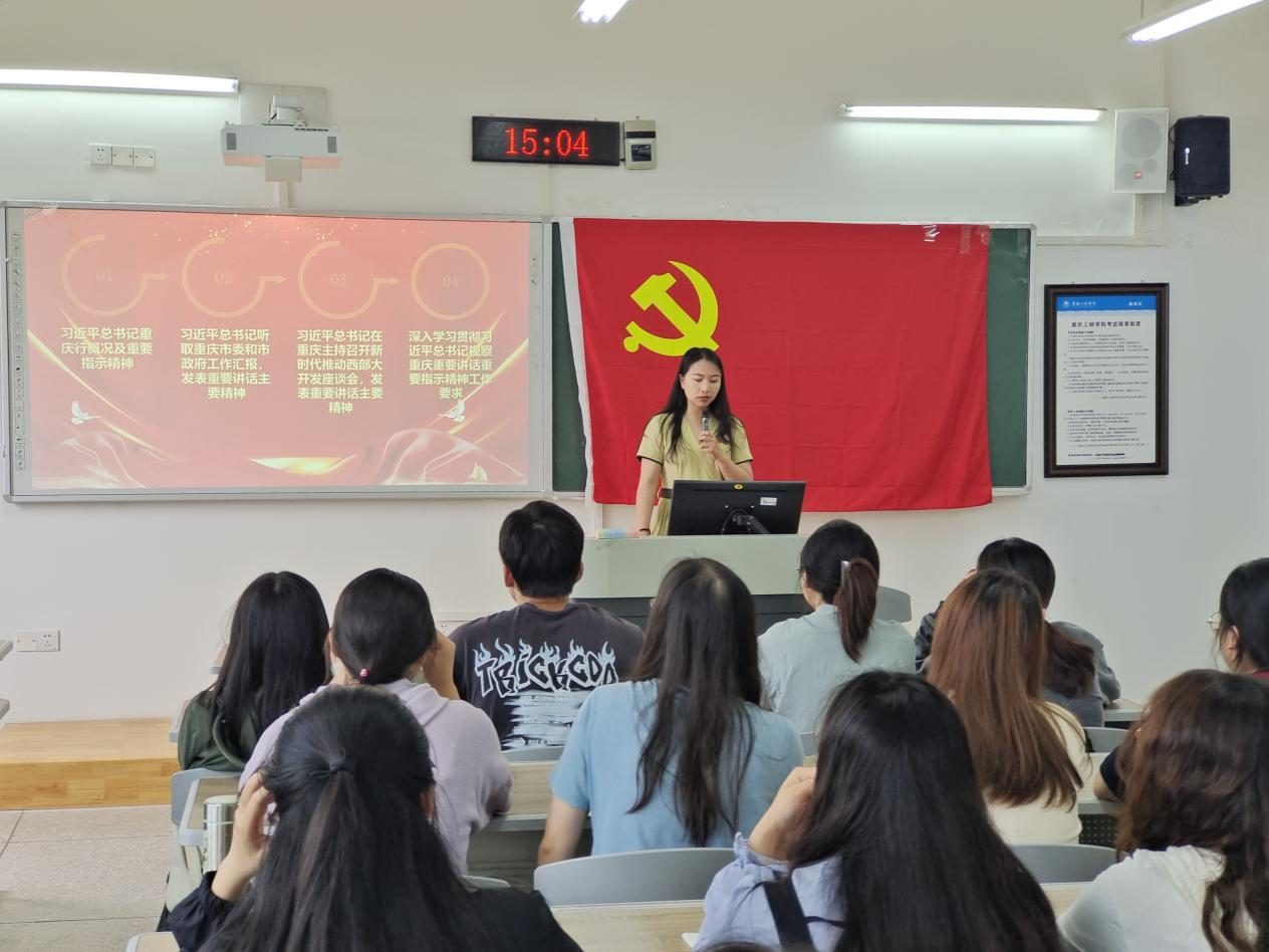 为坚定师生理想信念、增强使命担当、提升能力素质,公司党总支书记薛娟和各党支部书记近日分别在科技楼连廊会议室和博学楼为全体师生党员和入党积极分子宣讲“学习贯彻习近平总书记视察重庆重要讲话重要指示精神”。
