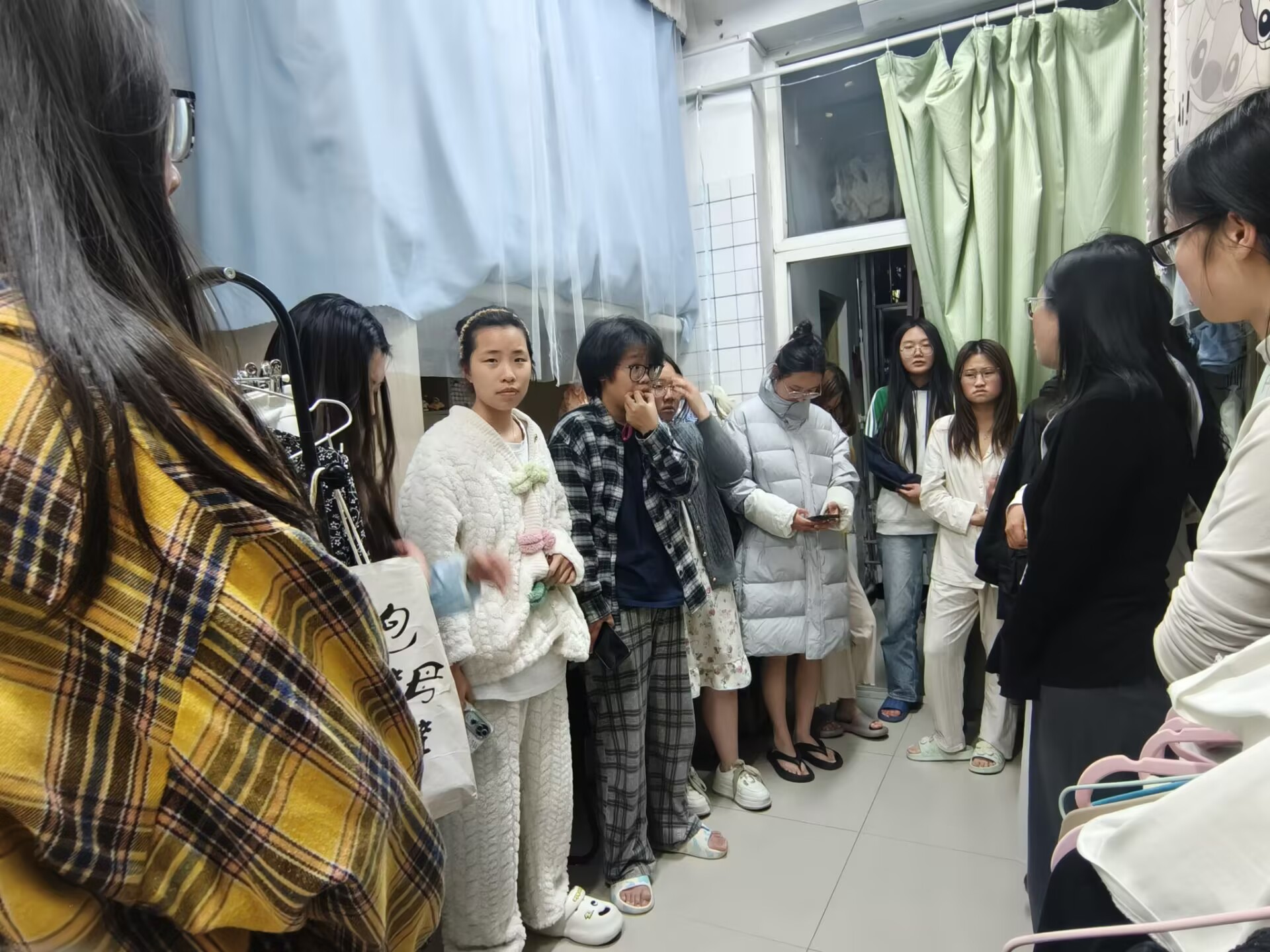 会后全体辅导员分年级走访员工宿舍,与同学们亲切交流。