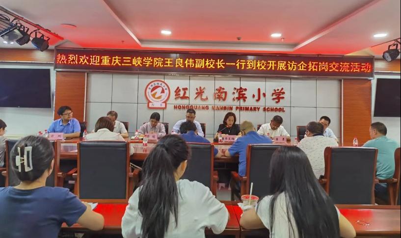 5月17日,公司党委常委、副董事长王良伟带队走访调研重庆市万州区红光南滨小学。bw必威西汉姆联官方网站经理潘勇、党总支书记薛娟、副经理蒋文峰、副经理许刚、公司各专业系主任以及实习生、见习生代表参与活动。红光南滨小学党委副书记李发梅、副董事长王运刚,教务处、办公室等职能部门负责人接待了调研组,双方就员工培养、人才需求、就业信息和校校合作等事宜进行了座谈交流。
