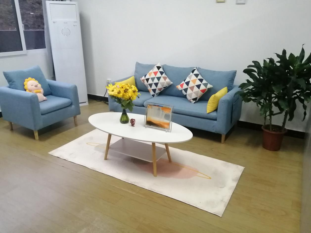 心理咨询室门口放置了心语信箱,内置舒适温馨的沙发、茶几,给人舒适明快的愉悦感。在沙发对面的物品架上放置着同学们的各类手工作品。心理咨询室为同学们提供了一个安静、温馨的场所,员工可以在这里与老师进行面对面的交流,敞开心扉,倾诉烦恼,在老师的带领下,慢慢走进自己的心灵深处,一方诉说、一方倾听,共同找出解决问题的方法,增强面对困难的信心,提高解决问题的能力。