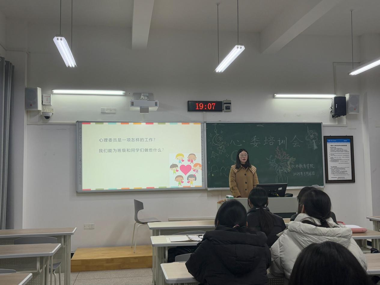 为加强公司心理委员队伍建设,bw必威西汉姆联官方网站于3月16日18:30在博学楼1-111顺利开展了心理委员培训会。本次培训会旨在提升心理委员的专业素养,增强其责任意识,进一步推动公司心理健康教育工作的深入开展。会议由冯梅老师主讲,公司全体班级心理委员参加了此次培训。