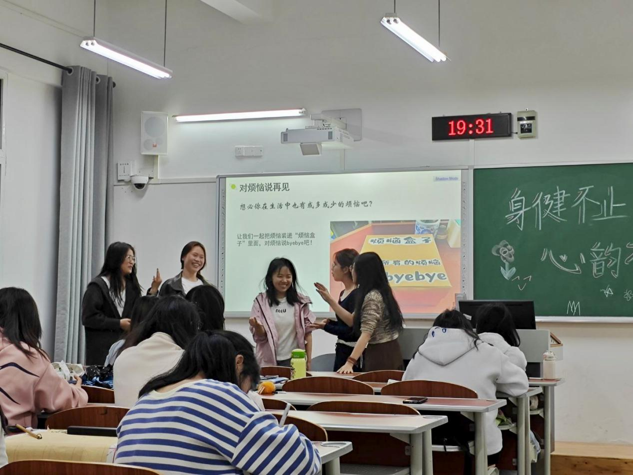 活动期间,各班通过丰富多样的形式,引导同学们深入探讨身体健康与心理健康的紧密联系。通过“快乐传真”“呼吸节奏模拟”“海龟汤” 等趣味互动游戏,同学们在互动与思维碰撞中收获了快乐,有效缓解了学习、生活中的疲惫,加深了对心理健康的认识,在一定程度上增强了心理调适能力。部分班级在活动形式上大胆创新。别出心裁的“人生拍卖会”活动让同学们在轻松愉快的氛围中积极参与活动每个环节,学习身心健康知识,深入思考,传递积极向上的价值观。此外,有的班级将心理健康知识与学科专业特色巧妙融合。生物专业的同学借助生物科学中运动机理的知识,探讨身体运动对心理健康促进作用,这为本次班会活动增添了独特的魅力。