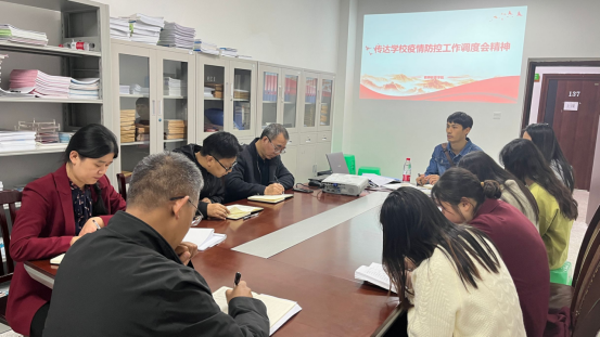 许刚副经理传达了重庆市和公司疫情防控工作调度会精神,要求共同守好校园安全阵地,严格落实全员核酸检测,管理好员工,加强心理疏导和人文关怀。薛娟书记结合公司实际,进一步部署了疫情防控和安全稳定等近期工作,公司成立由总支书记和经理双组长负责的疫情防控专班,要求大家提高政治站位,严格落实公司疫情防控会议精神;压实工作职责,抓实抓细全院师生疫情防控工作;注意工作方法,避免因疫情防控引发次生舆情。潘经理就近期公司工作进行强调:一是克服麻痹大意,保持清醒认识;二是坚持宽严适度,讲究工作方式;三是严格履职尽责,确保公司平安。蒋文峰副经理就研究生日常管理进行详细布置和要求。