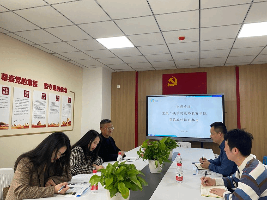 参观完毕,潘经理与新村致远实验小学副董事长谭晓泉进行了沟通交流。潘经理介绍了公司的专业设置、办学特色、人才培养和人才招聘等情况;谭校长对公司毕业生给予充分的肯定,就集团发展及人才需求等情况进行了详细讲解,从用人单位角度深度分析了师范专业当下的就业形式和小学教师职业发展现状。