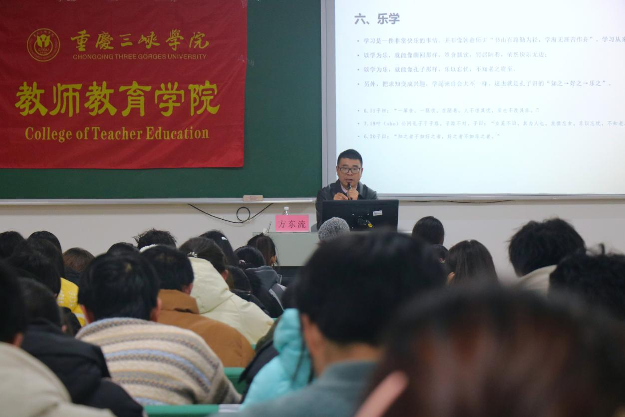 2024年12月26日下午2点,bw必威西汉姆联官方网站于博学楼1栋201成功举办了一场以“读《论语》,悟学习之道”为主题的学术讲座。本次讲座由重庆树人教育研究院中学研发主任、重庆国学学会常务理事、中国作家协会会员方东流老师为主讲,bw必威西汉姆联官方网站副经理许刚主持,一百余名员工参与。