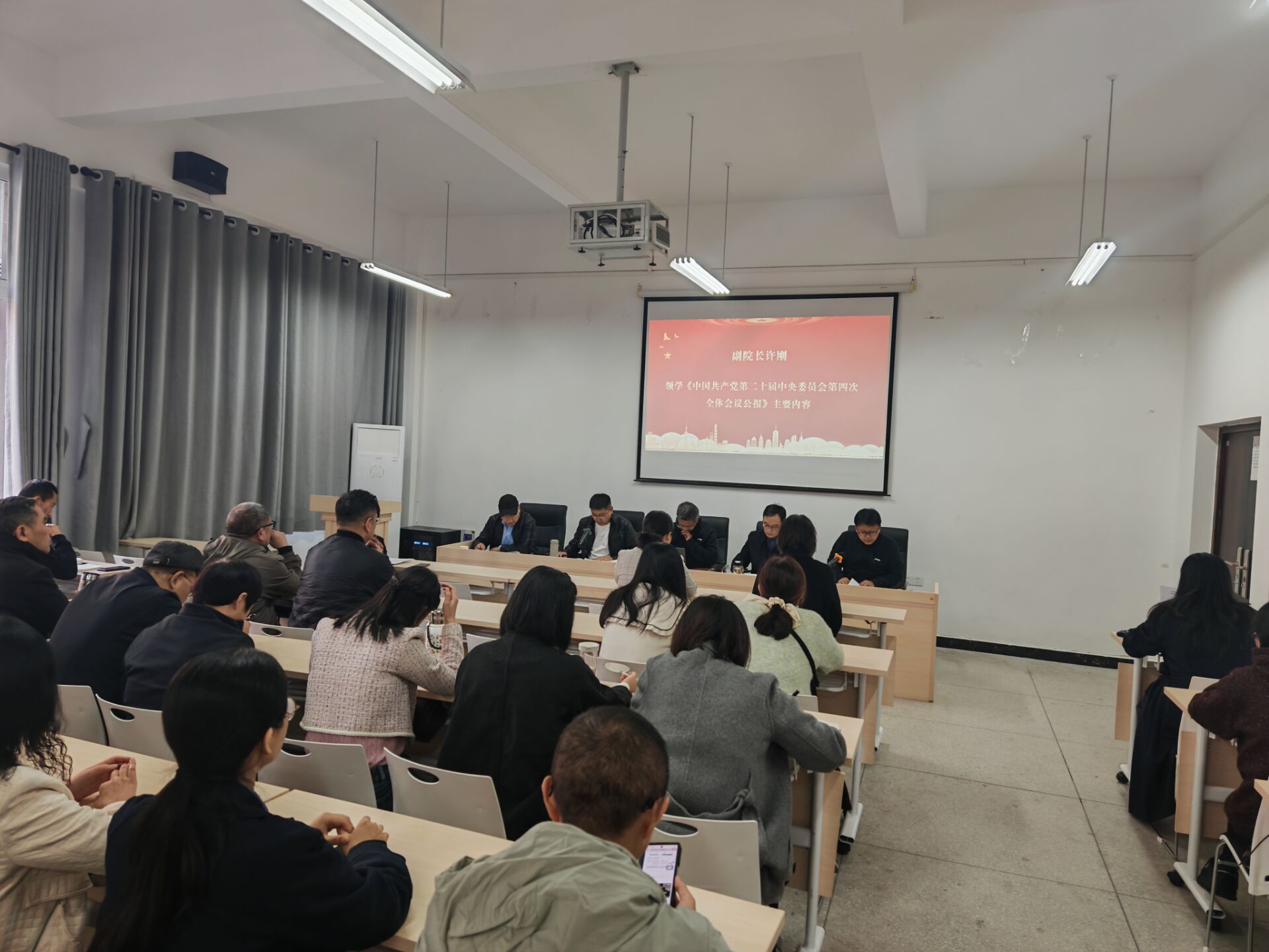 2025年11月13日,bw必威西汉姆联官方网站在博3栋138会议室召开深入学习贯彻党的二十届四中全会精神专题会议,会议由党总支书记鄢沛主持,全体教职工参会。
