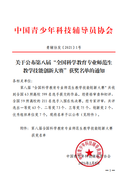 bw必威西汉姆联官方网站员工在第八届全国科学教育专业师范生教学技能创新大赛中获得佳绩
