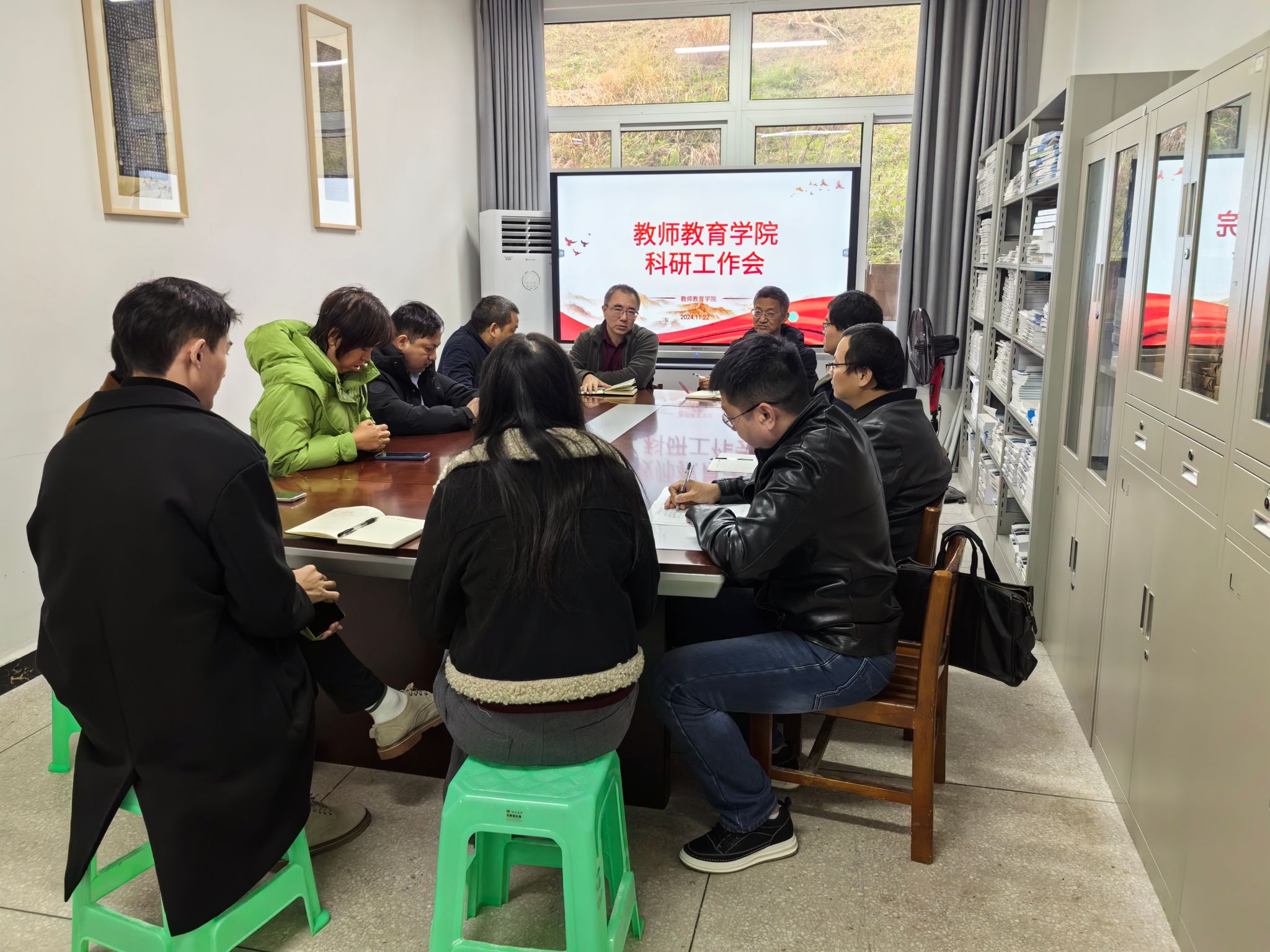 11月22日上午10:30,公司在博学楼3栋129会议室召开本期科研工作推进会,公司无课的部分高学历、高职称教师参会,会议由公司副经理蒋文峰主持。