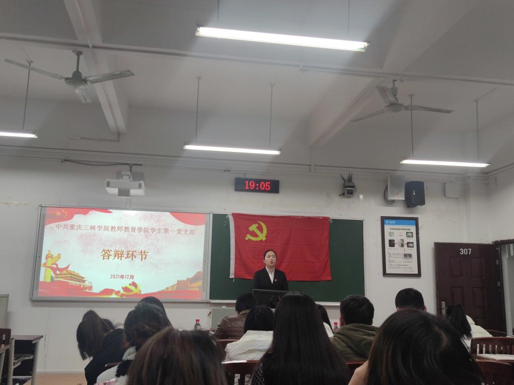 为提高党组织工作效率,加强党支部队伍建设,按照“六部推优法”的程序和要求,公司员工第一党支部于2021年12月3日18:30在明辨楼1栋307开展拟发展对象推优答辩会。公司党总支组织委员曾成明、员工第一党支部书记高曼、员工第一支部组织委员兼纪检委员陈雨、员工第一支部宣传委员张嘉欣出席本次答辩会,公司员工第十一期拟发展对象准时参会。
