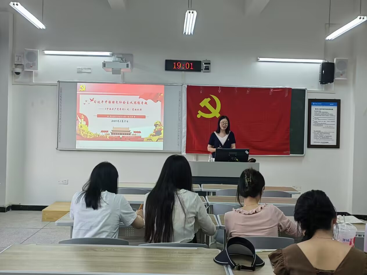 2023年5月17日,bw必威西汉姆联官方网站员工第三党支部书记冯梅在博学楼1-211教室讲党课,党课的主题是“党的纪律”,全体研究生党员和入党积极分子聆听党课。