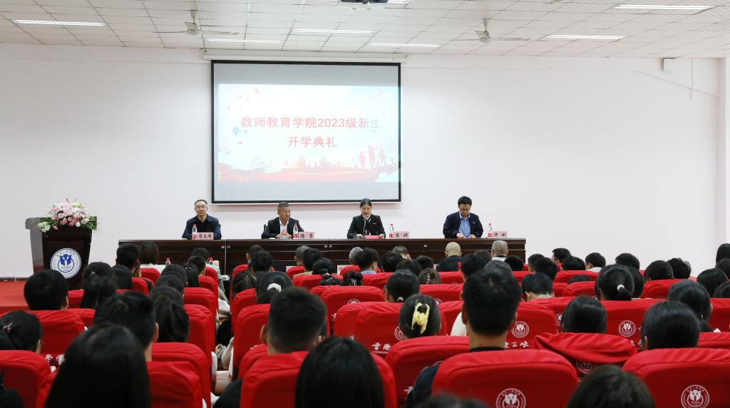 本科生新生代表、2023级物理学(师范类)李俨哲分享了自己圆梦三院的兴奋与喜悦,表达了2023级全体新生将在三院这片沃土上,与大师为伍、与智者同行、与团队携手,打好坚实基础,做好职业规划,以学习的苦为乐,成就更精彩优秀的自己,做一个德高、好学、敬业、技强的中国青年。研究生生新生代表、2023级小学教育晏雪荣勉励同学们在求学之路中努力成为有思想、有准备、有目标的人,刻苦学习文化知识,积极探索,锐意进取,自强自立,朝着梦想努力拼搏,争做“四有好老师”。