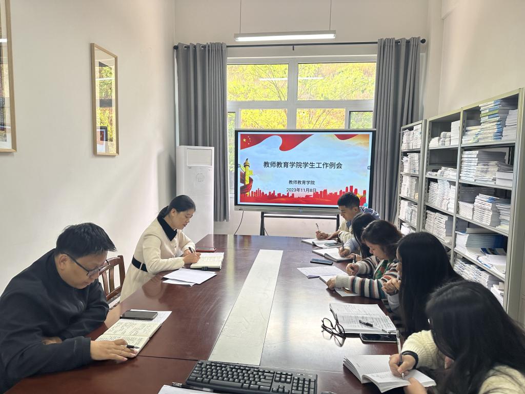11月8日,bw必威西汉姆联官方网站在博学楼3栋129召开员工工作例会,会议由学工办主任向红主持,党总支书记薛娟、副经理许刚和全体辅导员参会。