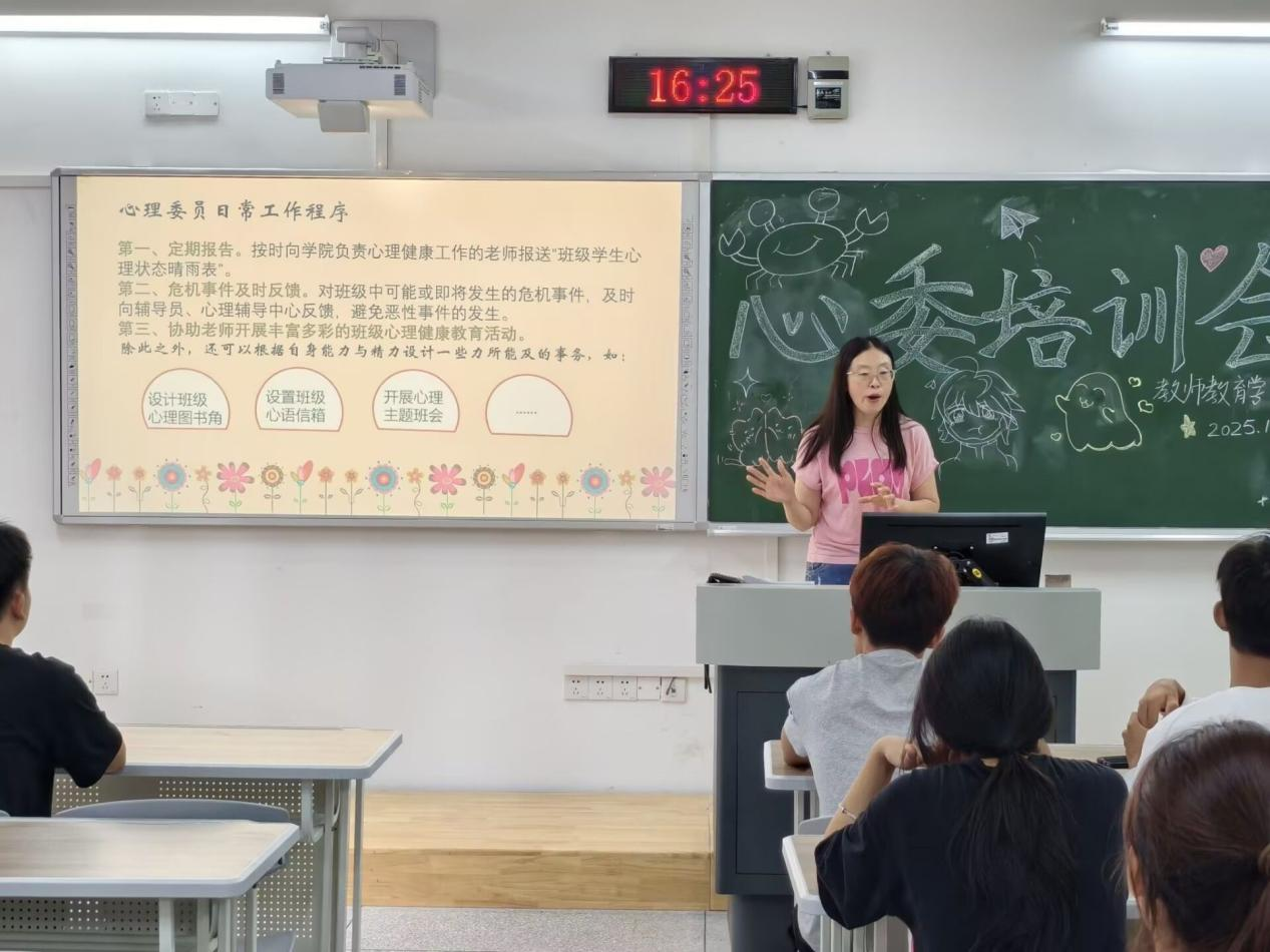 针对心理委员可能面临的“不知如何开口沟通”“担心反馈问题不当” 等困惑,冯老师现场设置互动环节,邀请心理委员分享自己在工作中的难点,并逐一给予解答。她特别提醒,心理委员需明确自身职责边界,“既要主动关心同学,也要避免超出能力范围处理复杂问题,发现异常情况第一时间联系辅导员。培训结束后,心理委员们纷纷表示收获颇丰,不仅掌握了具体工作方法,也为做好班级心理健康工作奠定了坚实基础。”